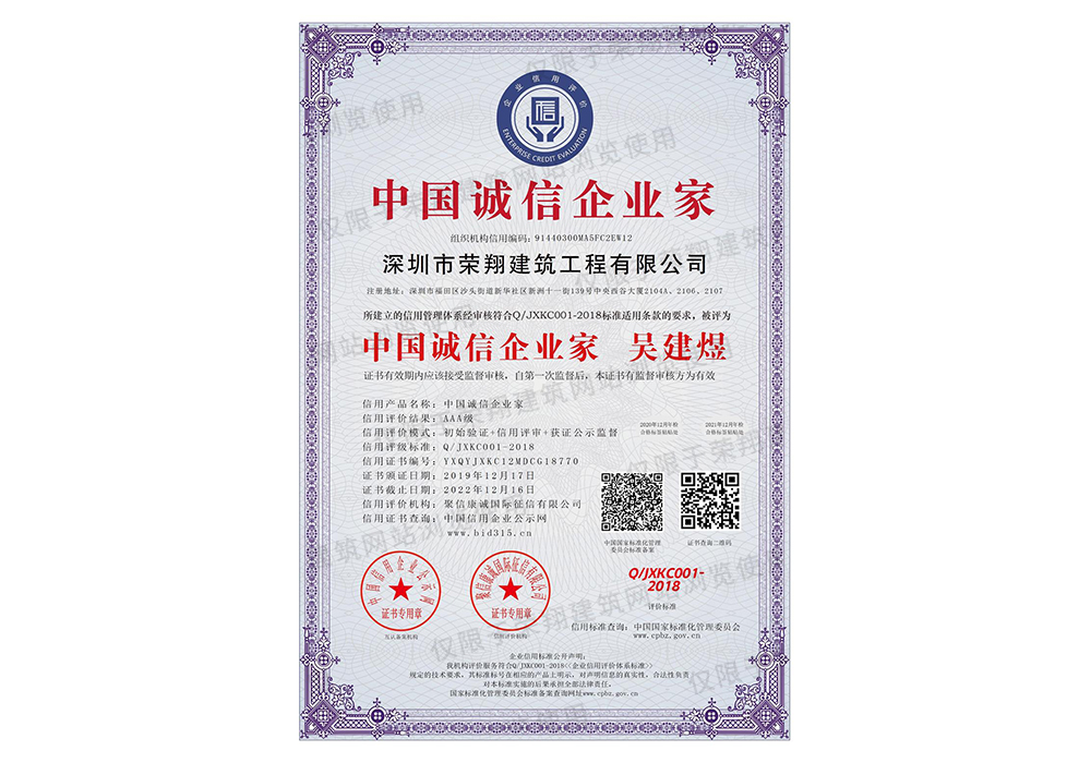 AAA级诚信经营示范单位